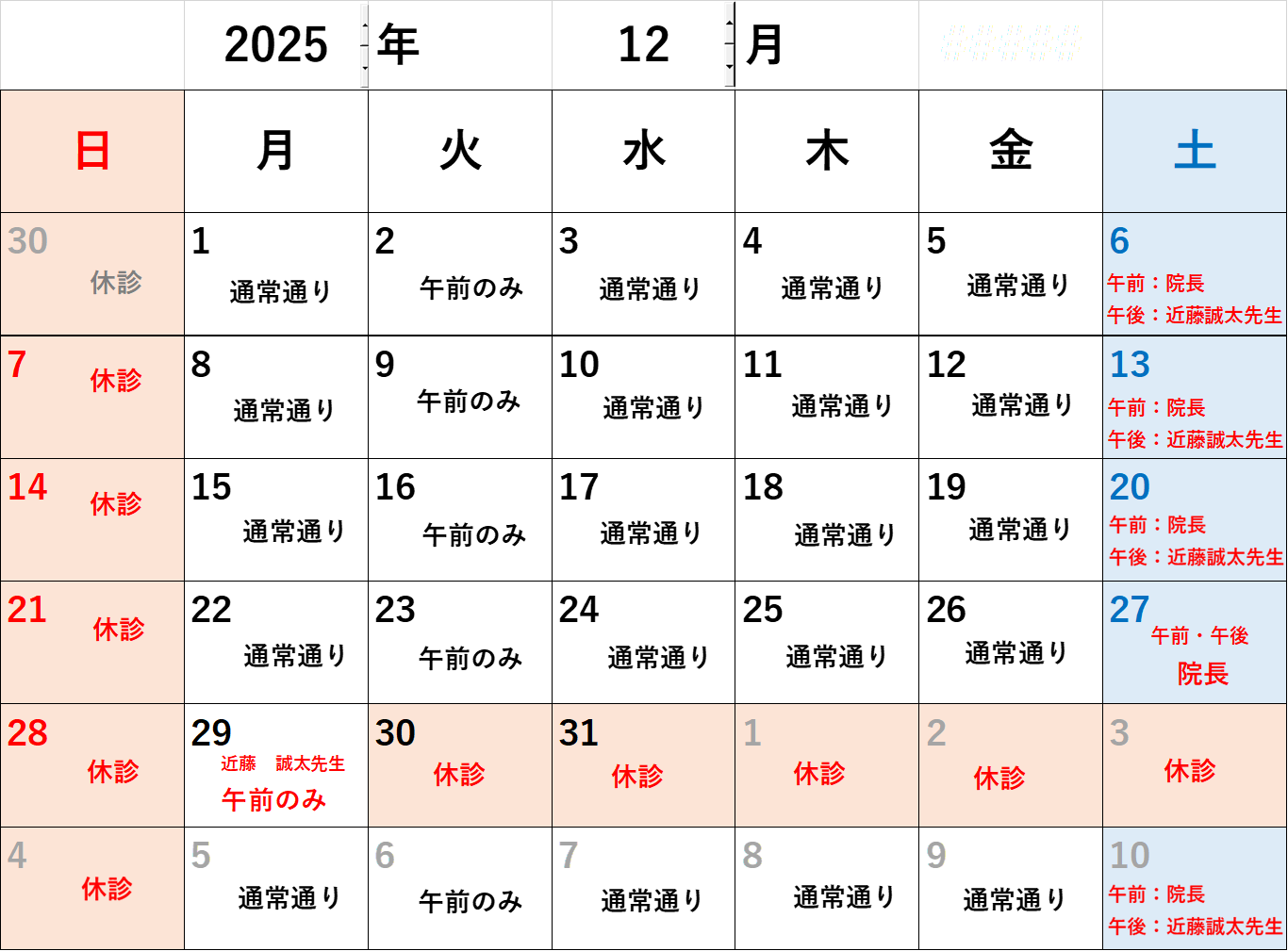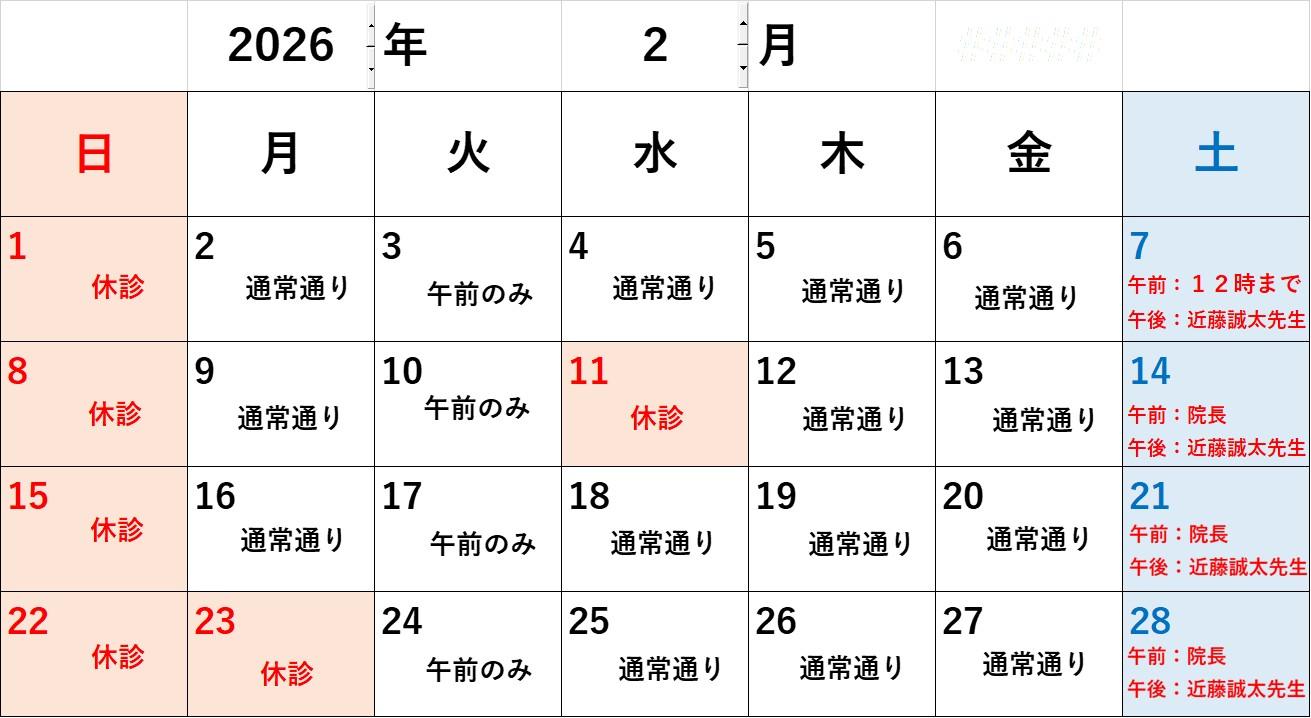 近藤誠太先生の診察予定日